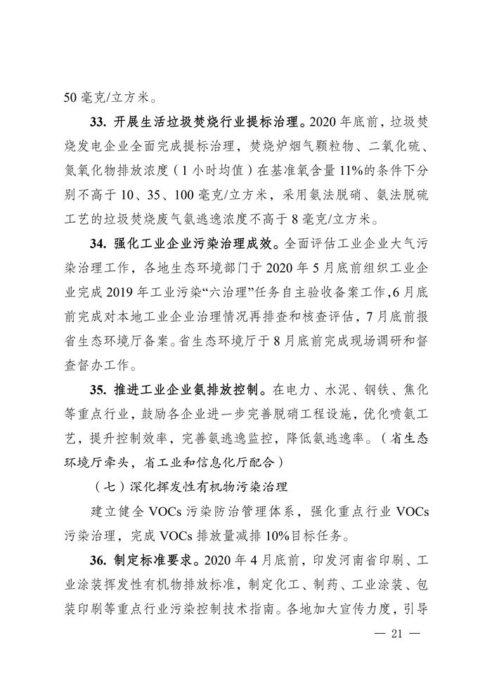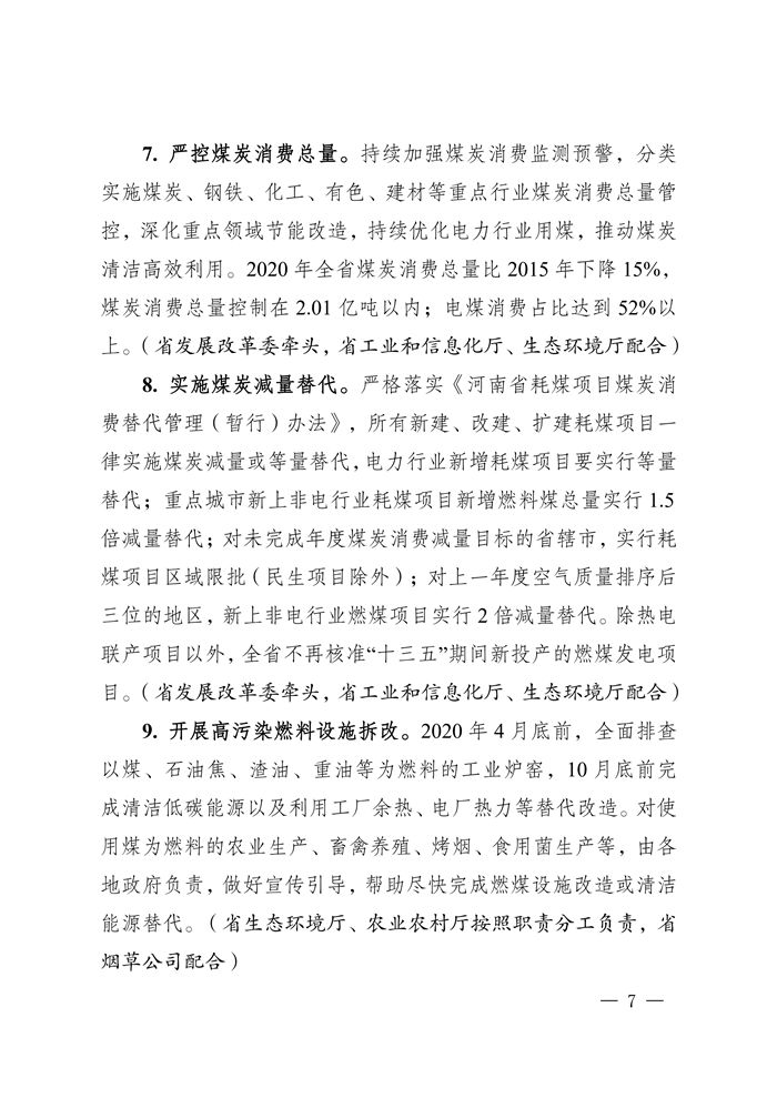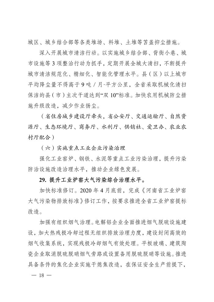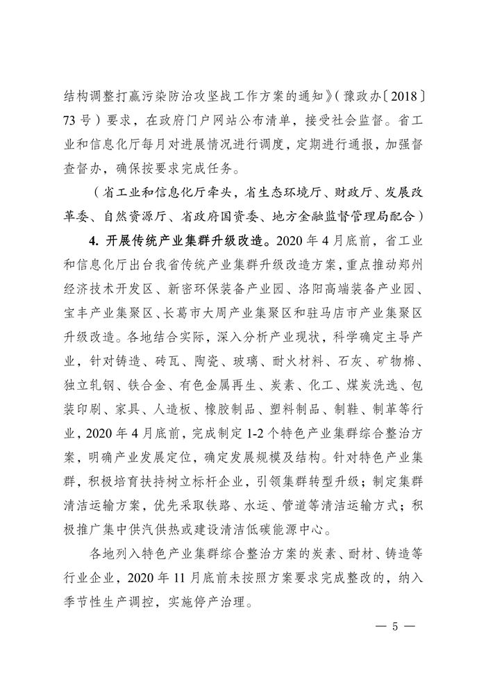 5、2020年4月底前,完成《河南省工业炉窑大气污染物排放标准》修订工作,推进工业炉窑提标改造。