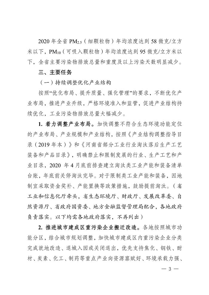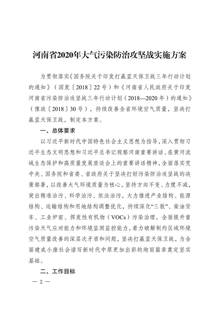 近日,河南省污染防治攻坚战领导小组办公室印发《河南省2020年大气污染防治攻坚战实施方案》(以下简称《方案》)。方案提出:
