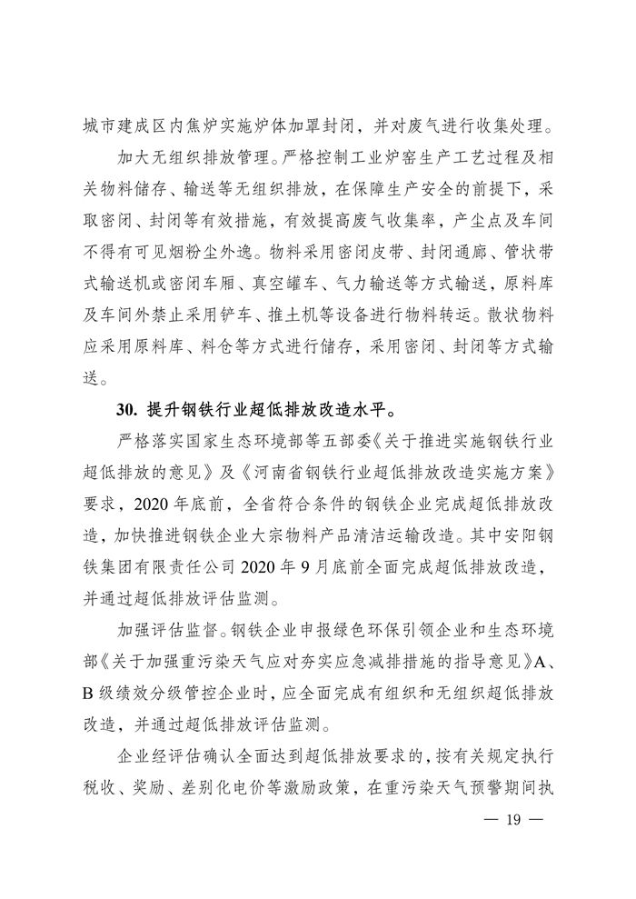 2、2020年底前,全省符合条件的钢铁企业全部完成超低排放改造。